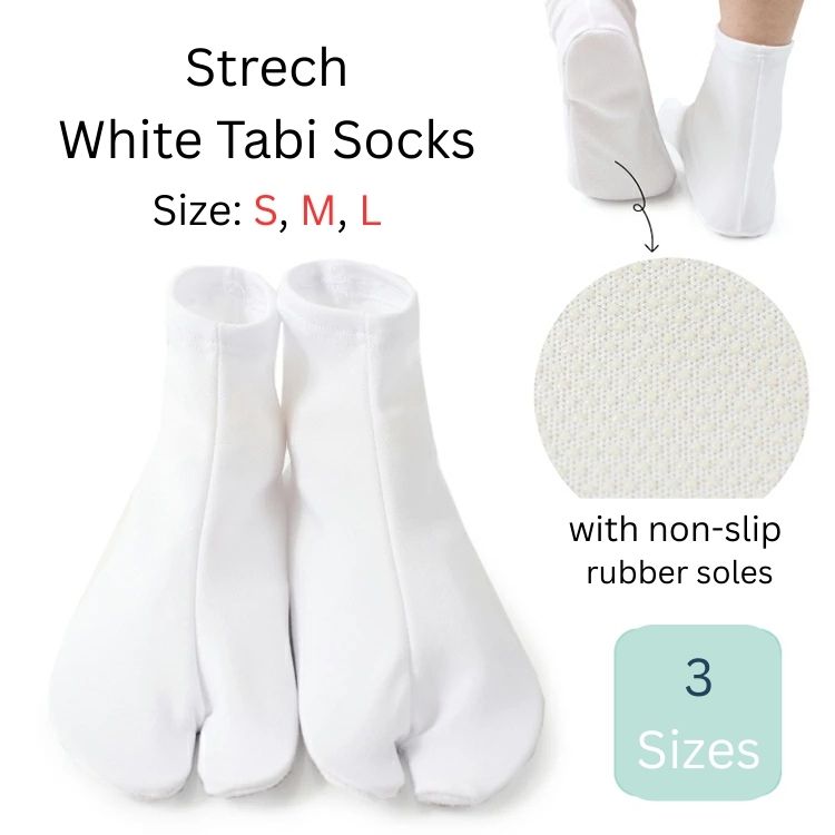 Authentic Japanese Kimono Accessory, Easy-to-Wear Stretch Tabi Socks with Non-Slip Soles, Size S, M, L