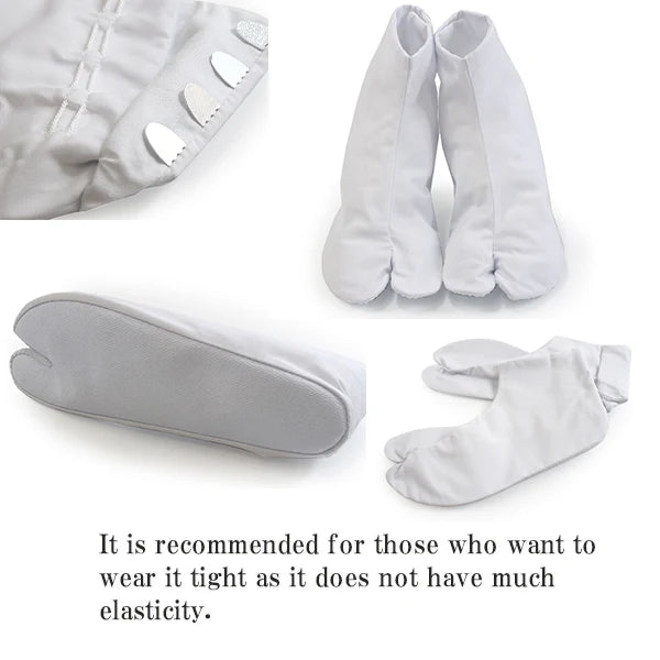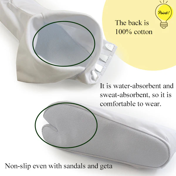 * Tetron (polyester) tabi are more durable, resistant to losing their shape, and quick-drying compared to 100% cotton. Many can be washed in a washing machine, and ironing after washing is simple, making them easy to care for. They are often made from a polyester–cotton blend, which adds durability and helps prevent wrinkles. Since the fabric itself does not stretch, it is important to choose the right size. However, they are reasonably priced and versatile, suitable for everything from everyday wear to formal occasions.