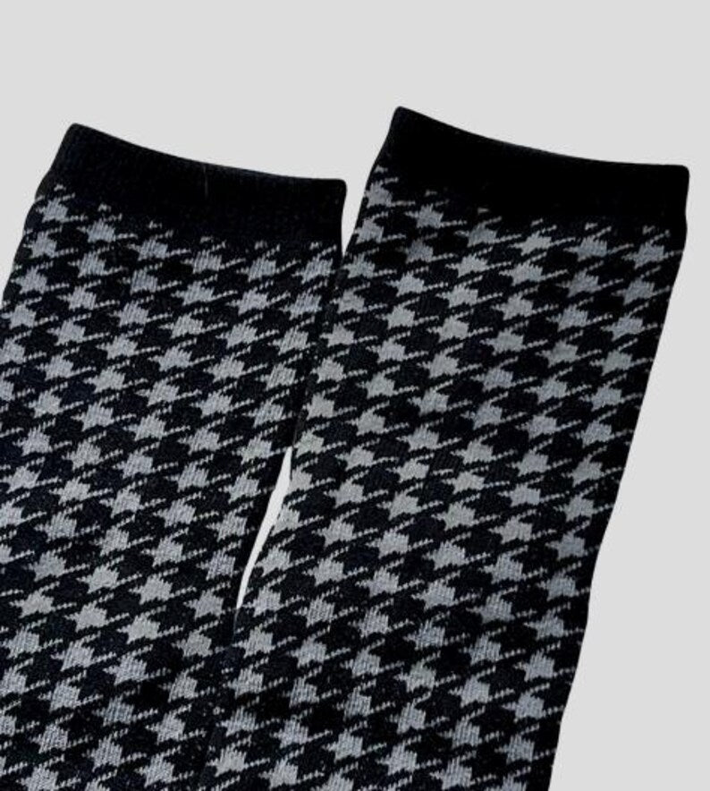 The timeless black and gray houndstooth pattern makes them easy to pair with casual wear, kimono-inspired fashion, or minimalist looks. The crew length provides comfortable coverage for daily use.
