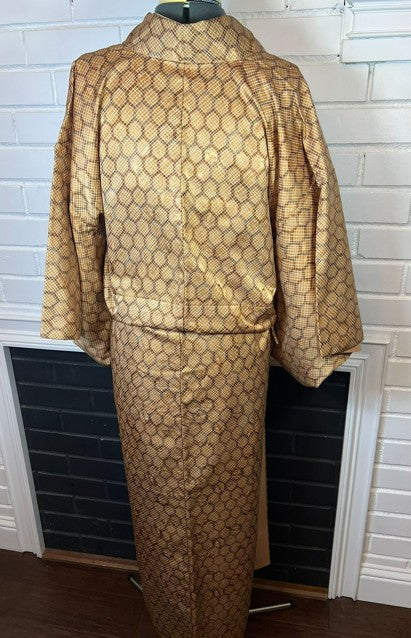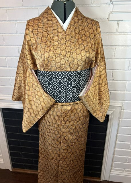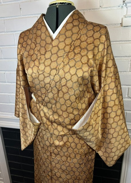 Vintage Japanese Brown Geometric Kimono | Awase (Fully Lined) | Traditional Japanese Clothing