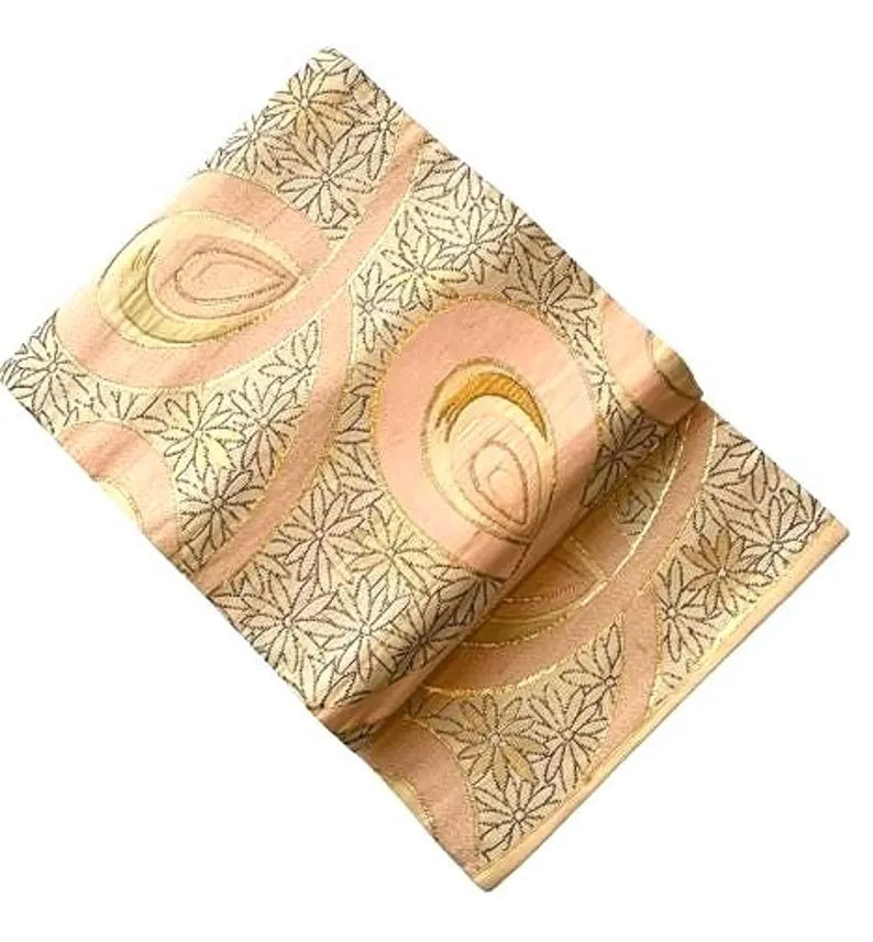 This obi has a soft, feminine tone and subtle metallic shine, making it perfect for styling with kimono, displaying as Japanese decor, or using for photoshoots and vintage fashion collections.